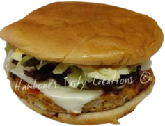 Marinated chicken breast, cheese, lettuce, tomato, pickles, red onions & Hambone Sauce on a toasted bun.